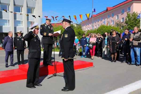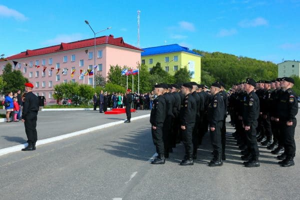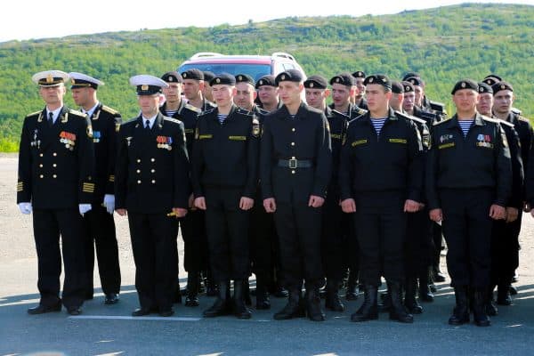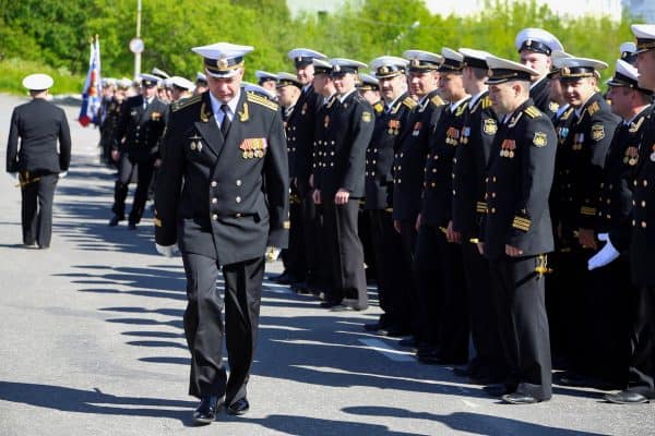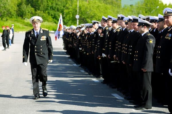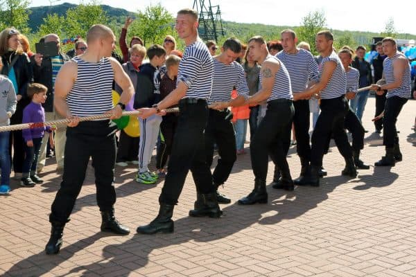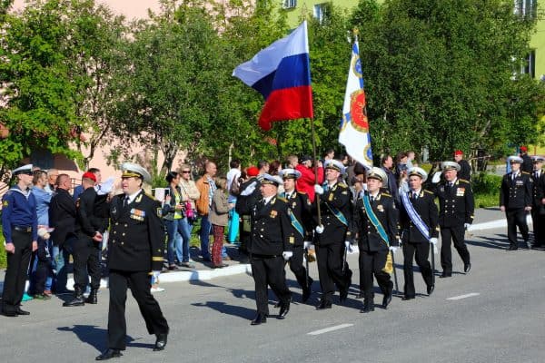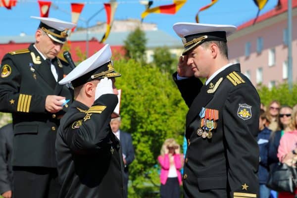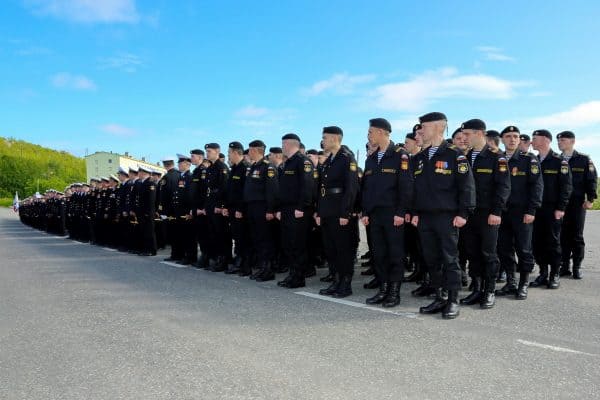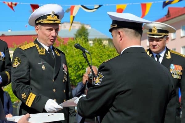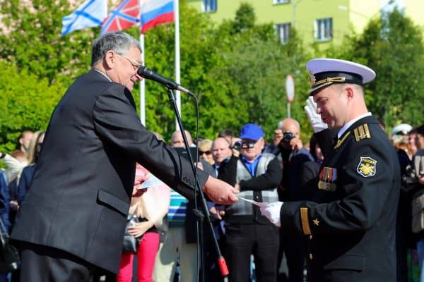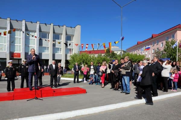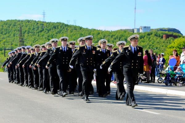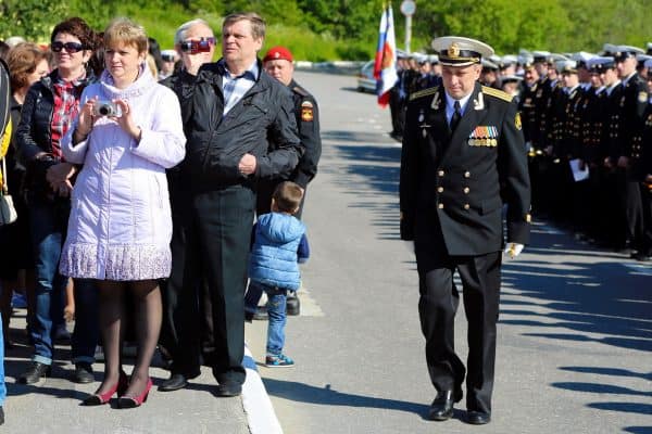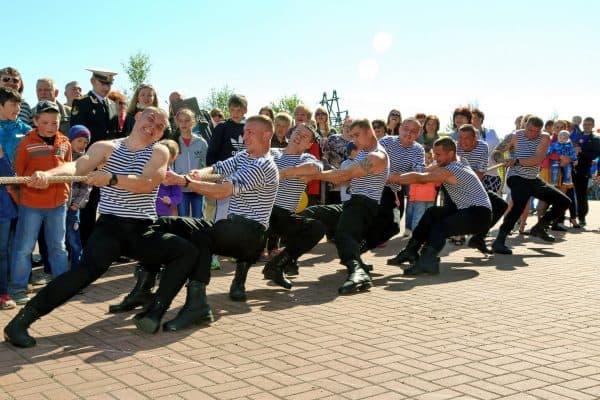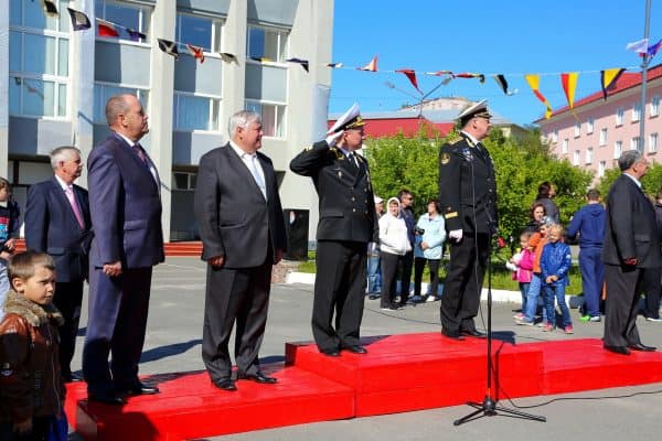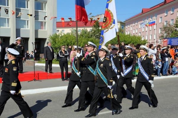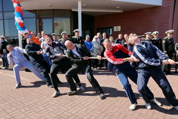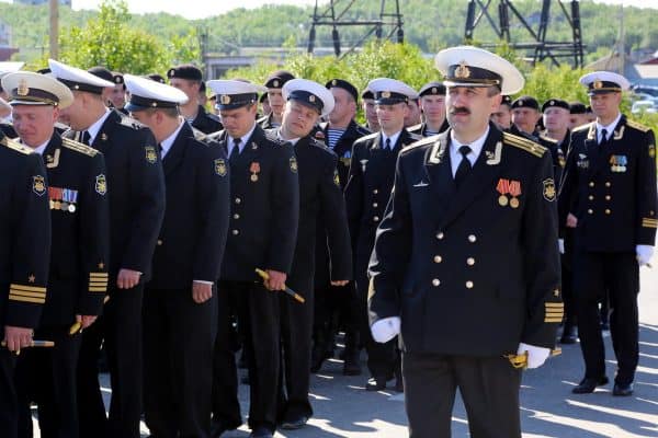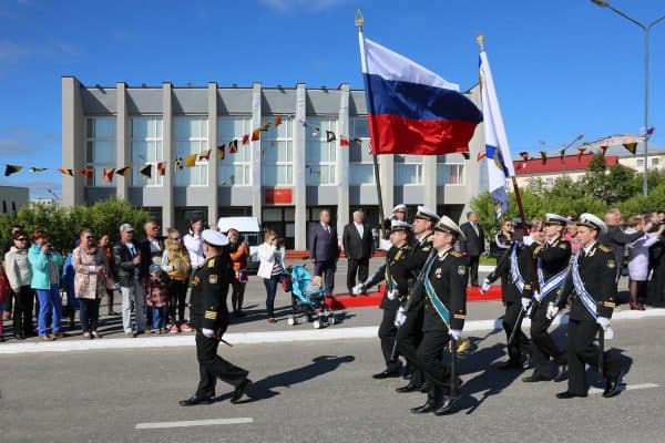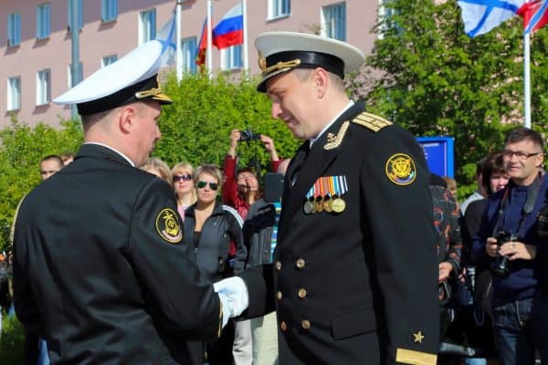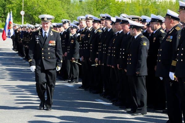 Фоторепортаж с празднования Дня ВМФ в Видяево 26 июля 2015 года — торжественное построение личного состава, посвящённое 50-летию 7-й дивизии АПЛ и Дню ВМФ, поздравления и награждения, конкурс по строевой подготовке и исполнению строевой песни, командные соревнования по перетягиванию каната и гиревому спорту, праздник Нептуна.