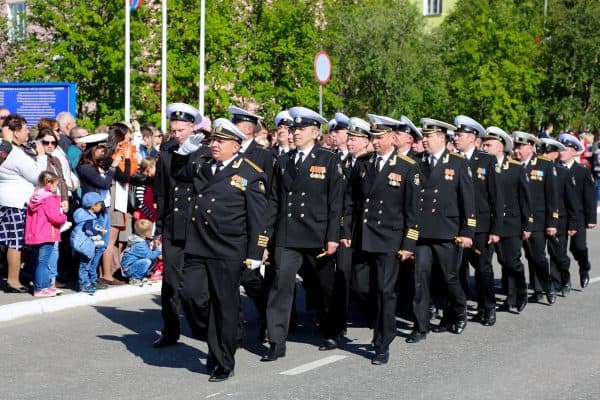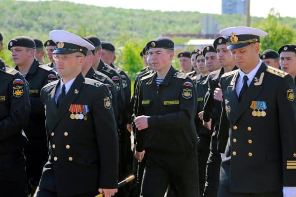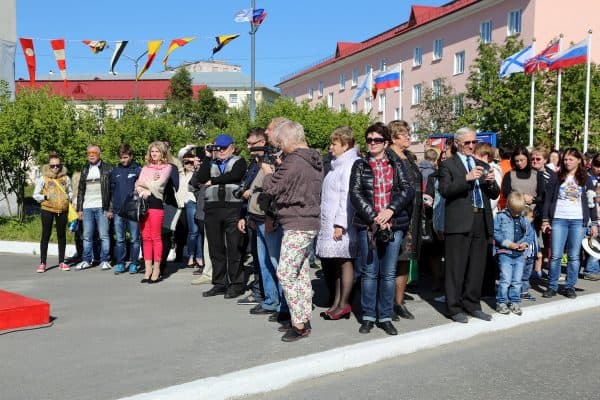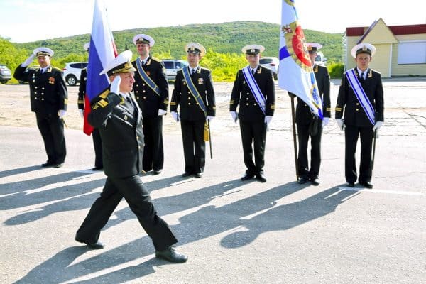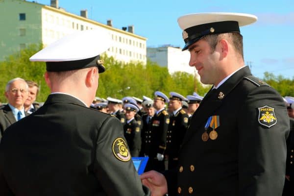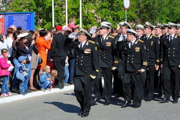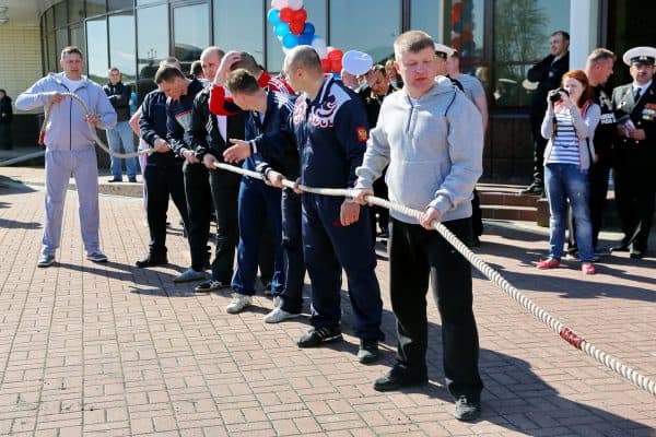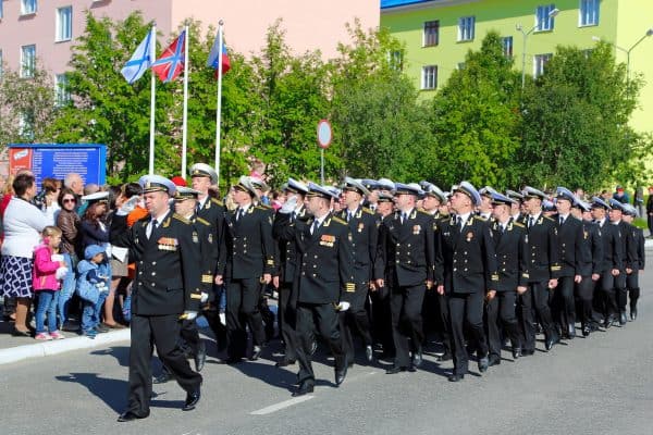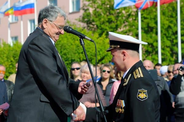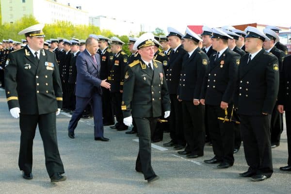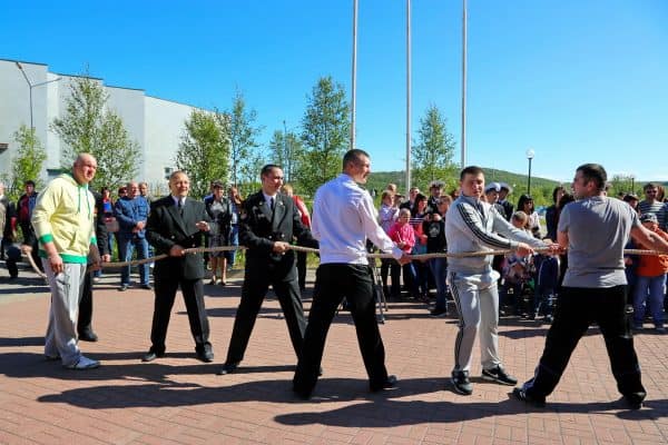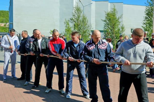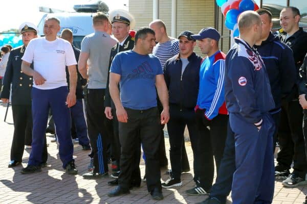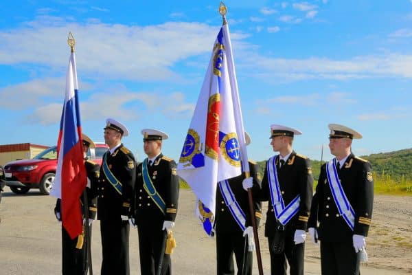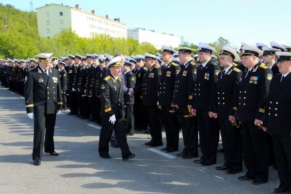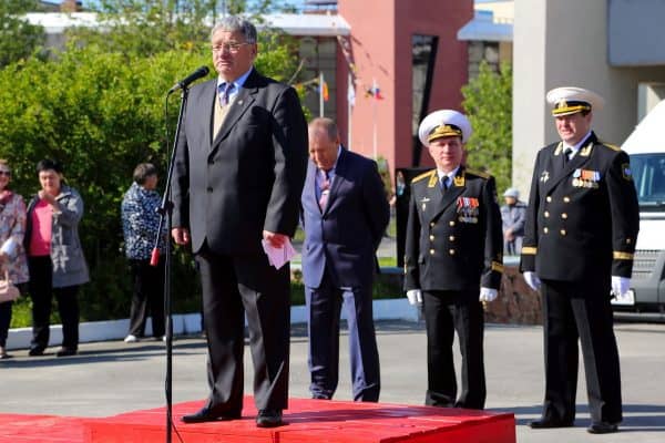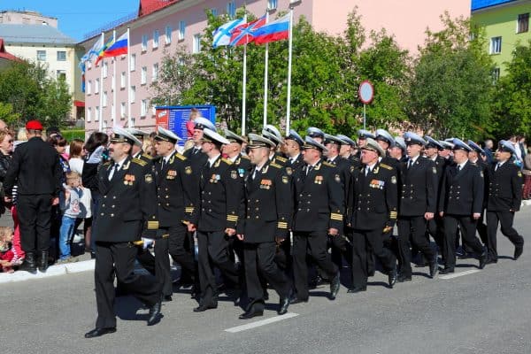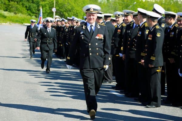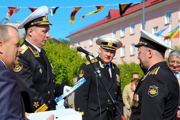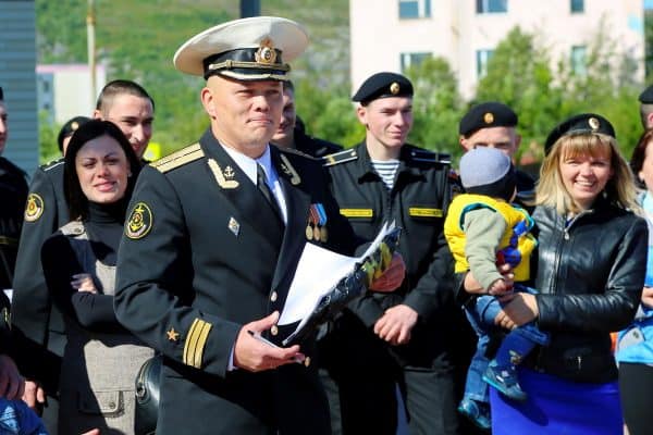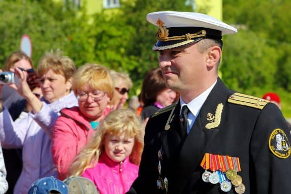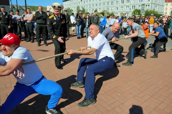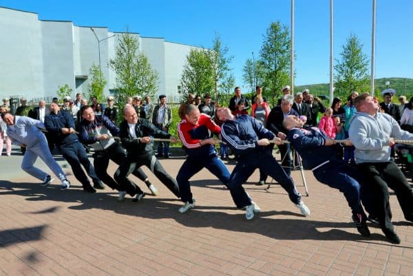 Фоторепортаж с празднования Дня ВМФ в Видяево 26 июля 2015 года — торжественное построение личного состава, посвящённое 50-летию 7-й дивизии АПЛ и Дню ВМФ, поздравления и награждения, конкурс по строевой подготовке и исполнению строевой песни, командные соревнования по перетягиванию каната и гиревому спорту, праздник Нептуна.