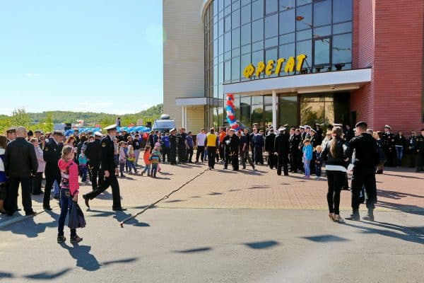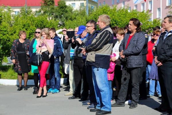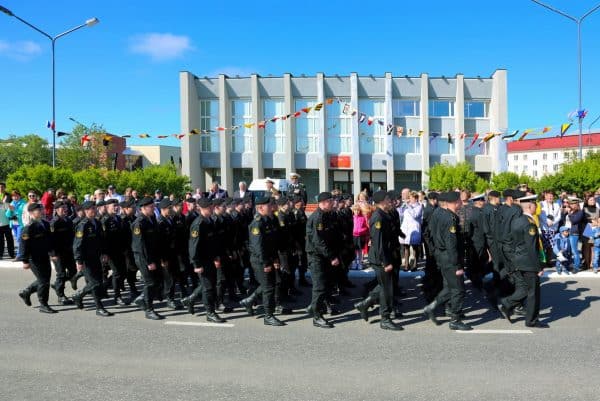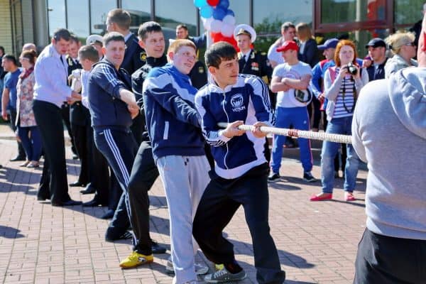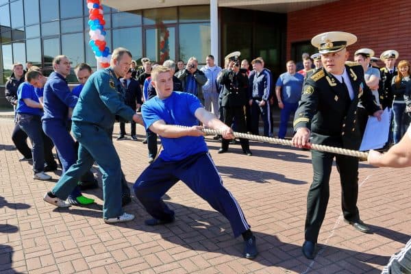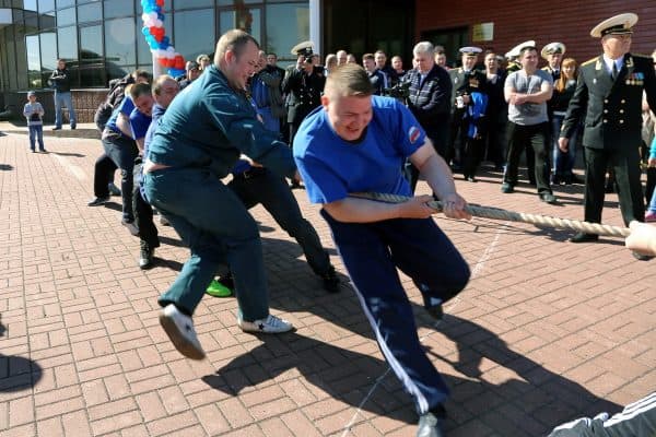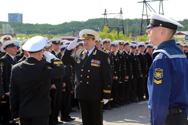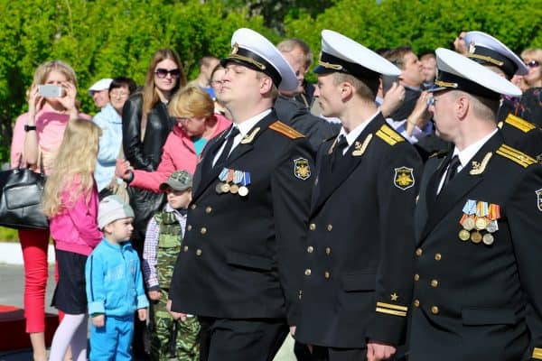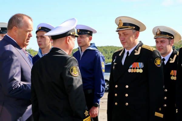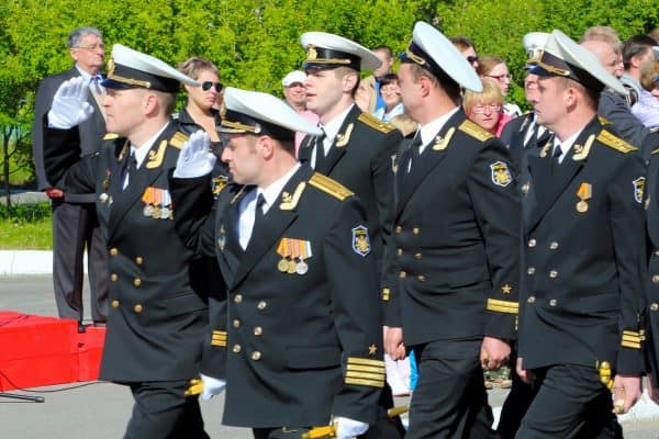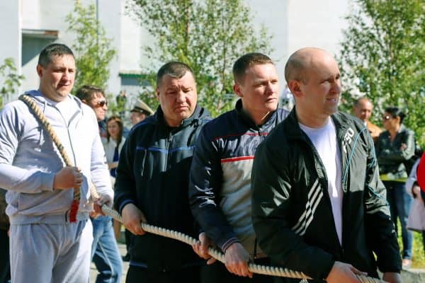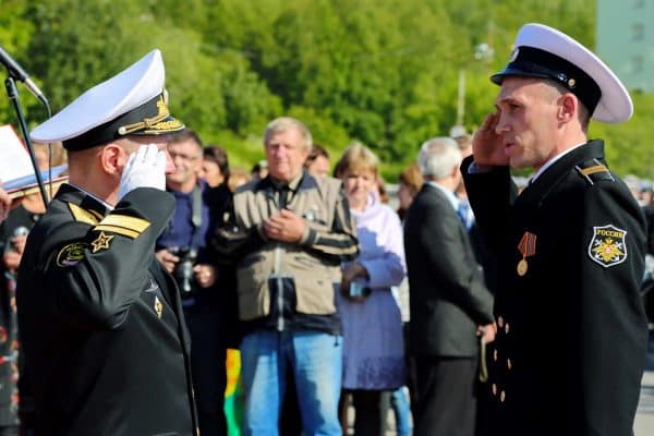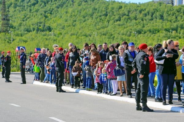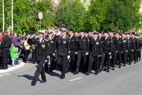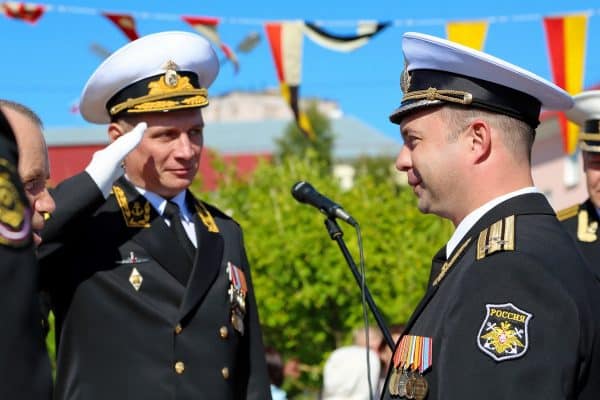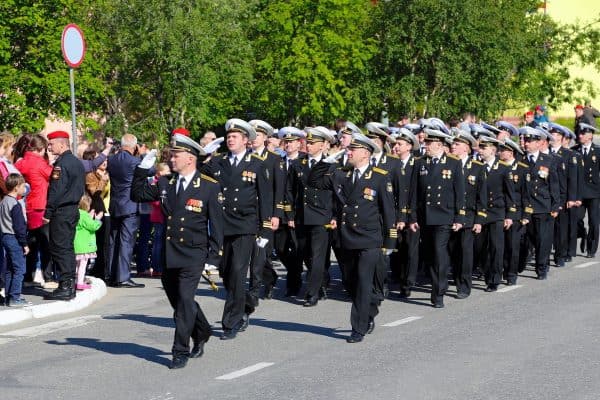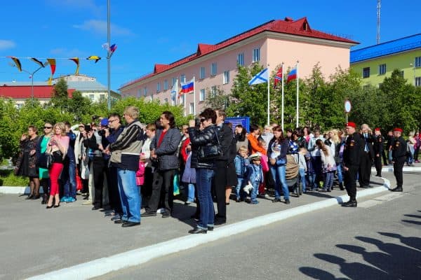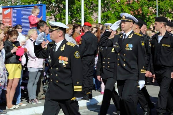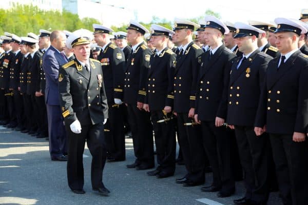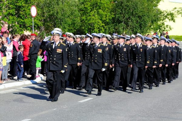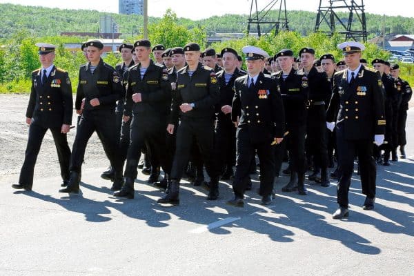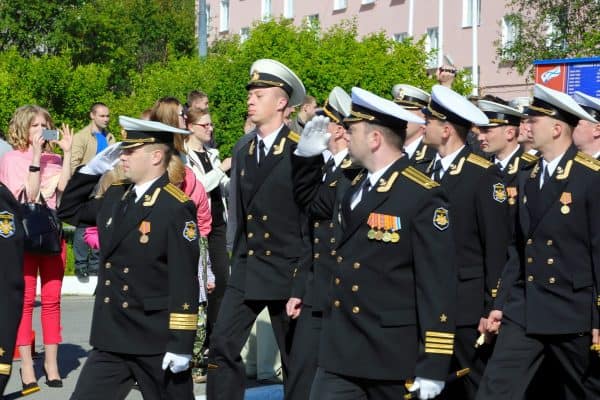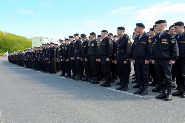 Фоторепортаж с празднования Дня ВМФ в Видяево 26 июля 2015 года — торжественное построение личного состава, посвящённое 50-летию 7-й дивизии АПЛ и Дню ВМФ, поздравления и награждения, конкурс по строевой подготовке и исполнению строевой песни, командные соревнования по перетягиванию каната и гиревому спорту, праздник Нептуна.