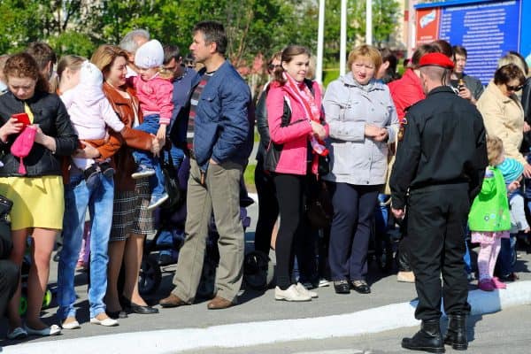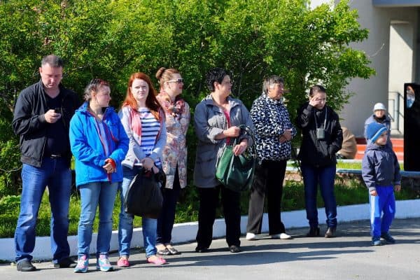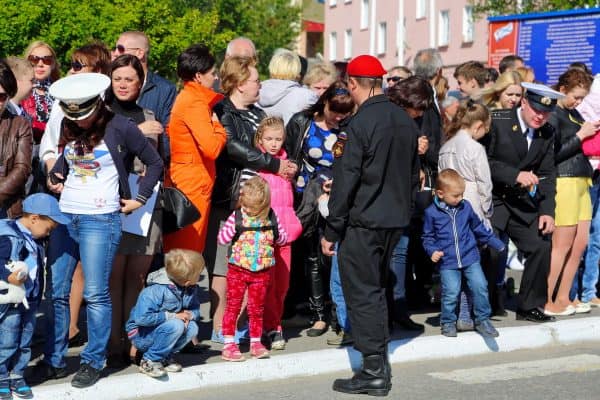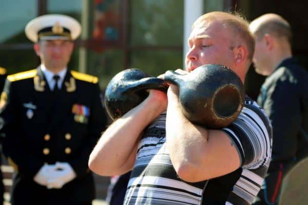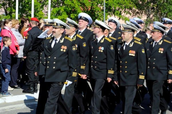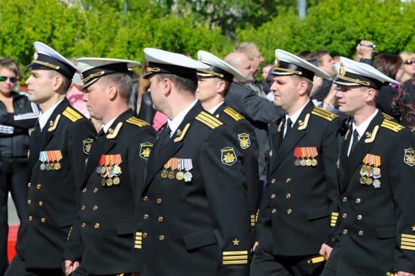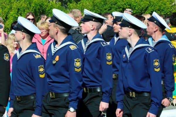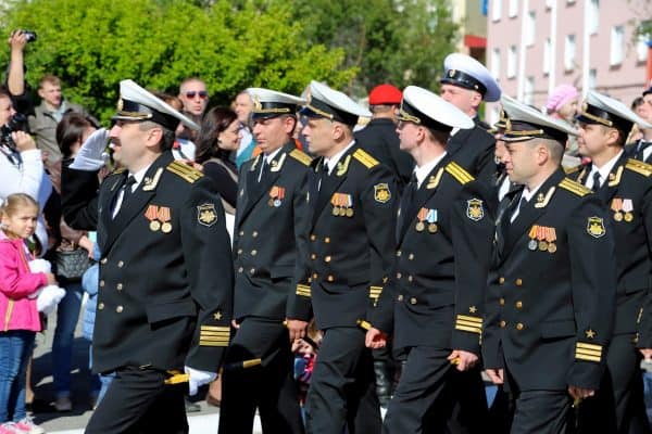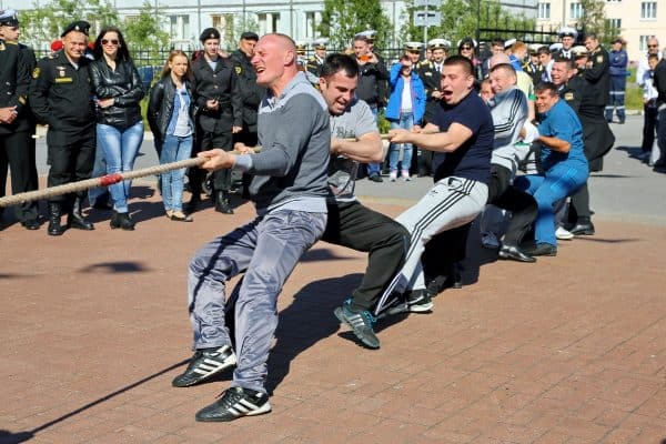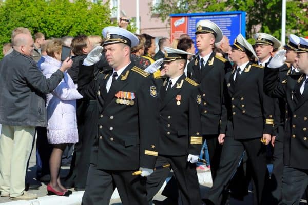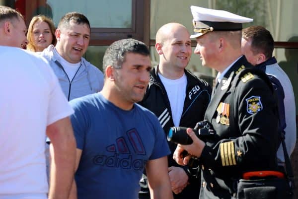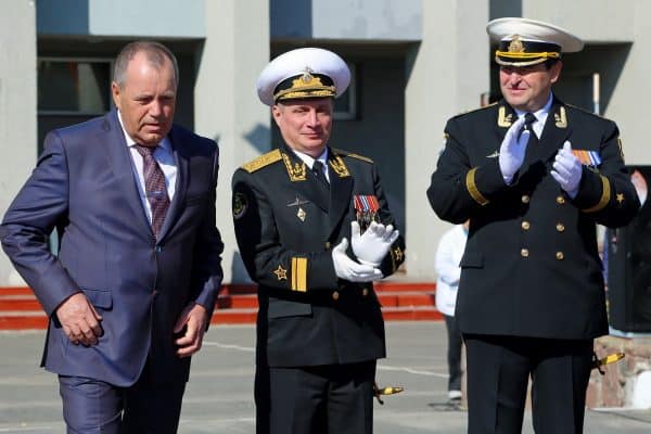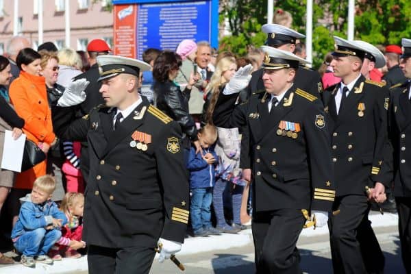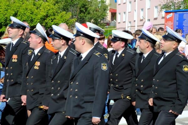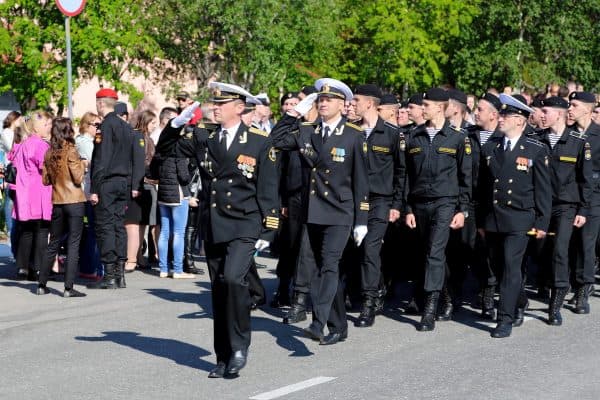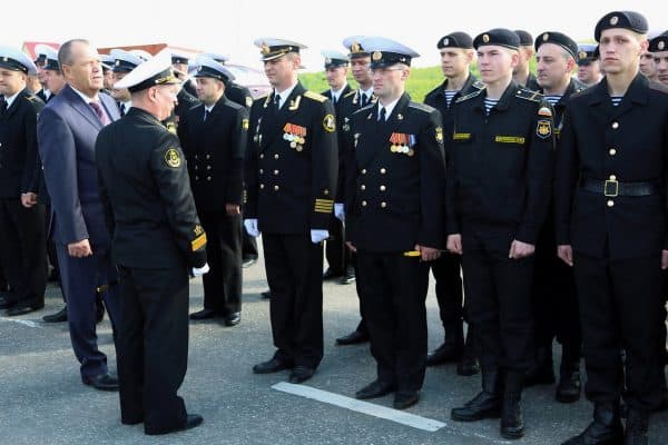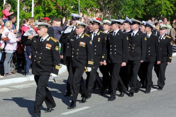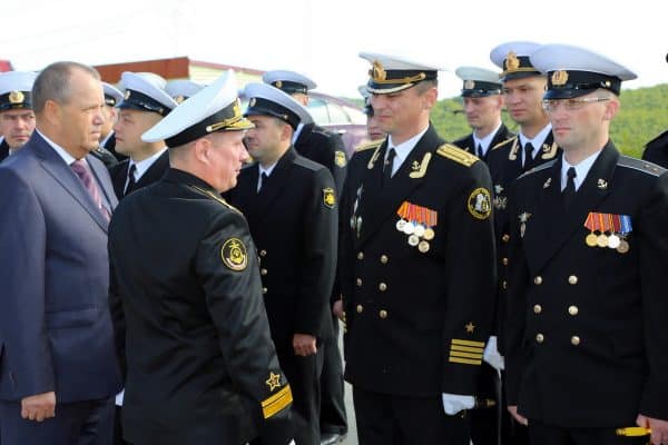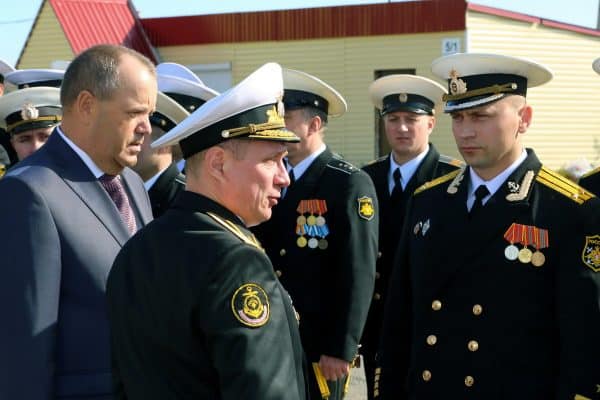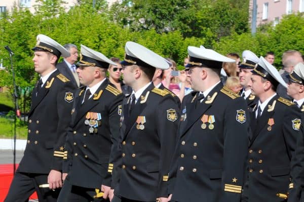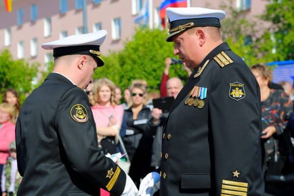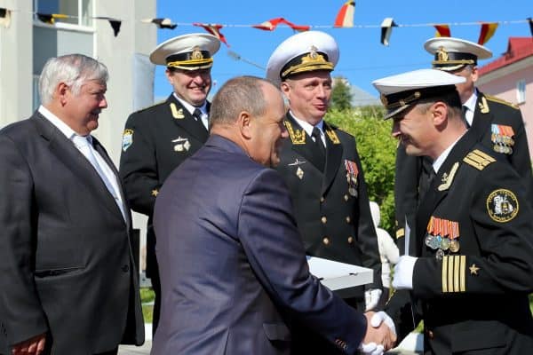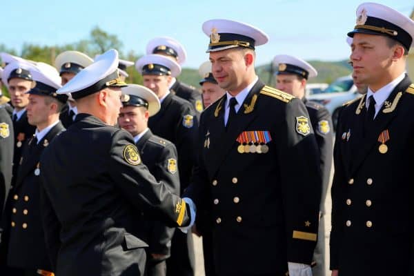 Фоторепортаж с празднования Дня ВМФ в Видяево 26 июля 2015 года — торжественное построение личного состава, посвящённое 50-летию 7-й дивизии АПЛ и Дню ВМФ, поздравления и награждения, конкурс по строевой подготовке и исполнению строевой песни, командные соревнования по перетягиванию каната и гиревому спорту, праздник Нептуна.